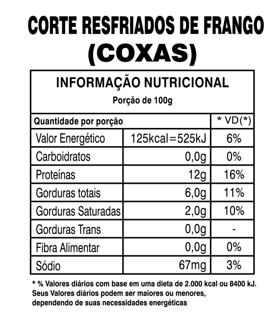 A Coxa e Sobre coxa União está disponível através de embalagens de polietileno, granel com peso médio de 2kg por pacote. Temos pacotes de uso industrial que pesa em média 15kg