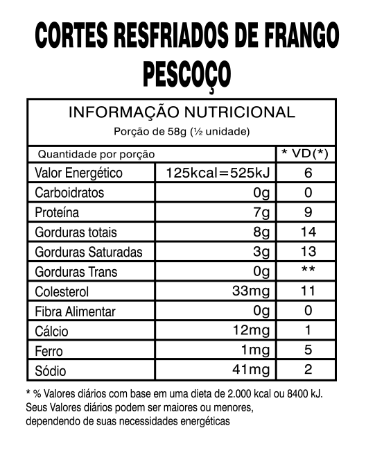 O Pescoço União está disponível através de embalagens de polietileno, granel com peso médio de 2kg por pacote.