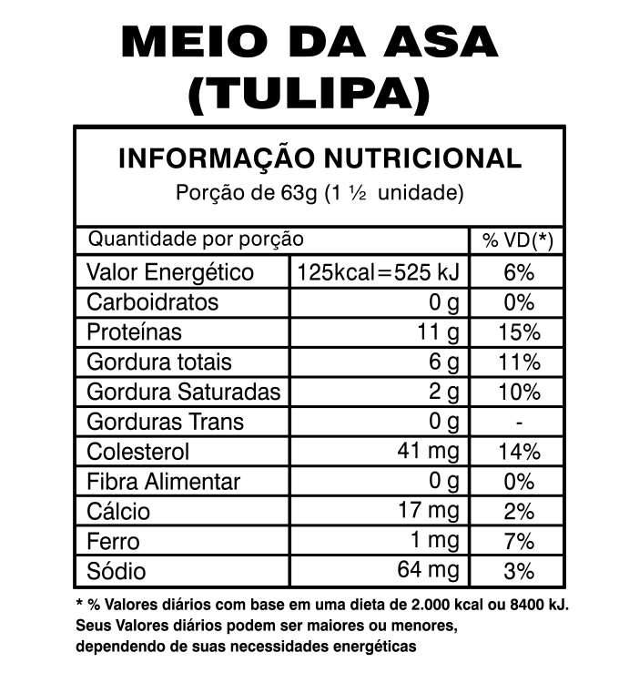 Tulipas Resfriadas VOLTAR A Tulipa União está disponível através de embalagens de polietileno, granel com peso médio de 1kg por pacote. Todos os frangos abatidos são criados sem o uso de hormônios, como estabelece a legislação brasileira.